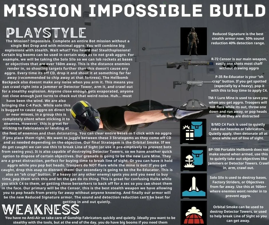 The Helldiver asset images on our build pages are provided in cooperation with the Helldivers Wiki – see their detail pages for licensing, copyright, and credits.